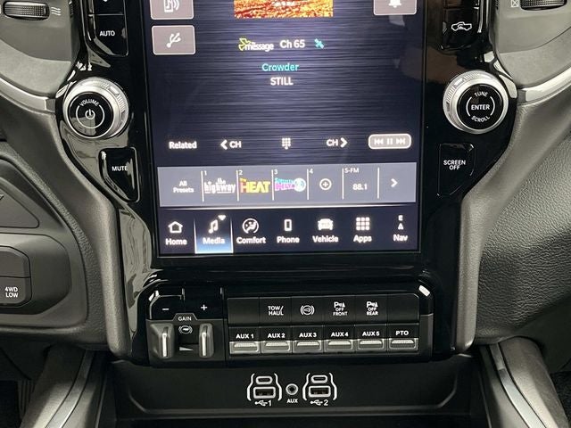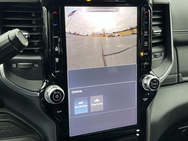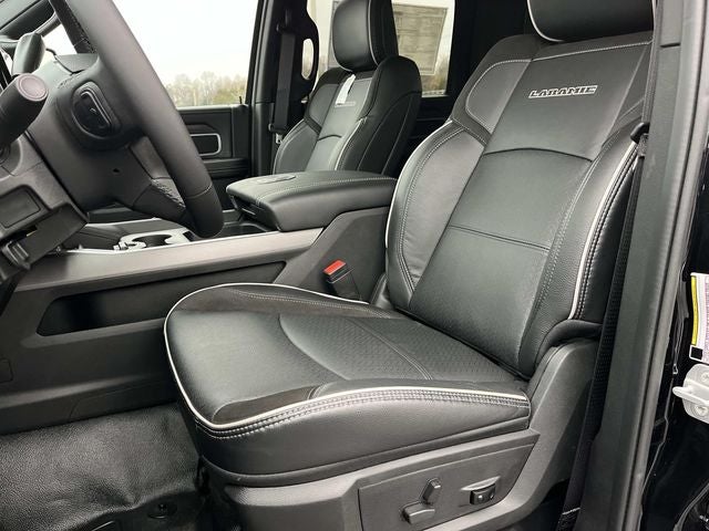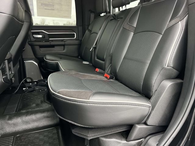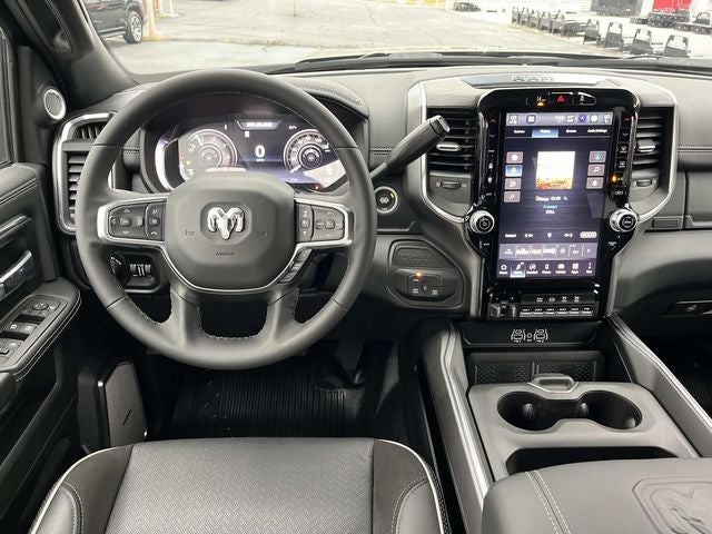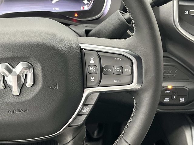 #1 Seat Foam Cushion, 115V Auxiliary Power Outlet, 115V Auxiliary Rear Power Outlet, 12.0 Touchscreen Display, 17 Speaker harman/kardon Premium Sound, 19.5 x 6.0 Steel Wheels, 2 Way Rear Headrest Seat, 2-Door Passive Entry, Front Door Locks, 4 Way Front Headrests, 40/20/40 Split Bench Seat, 400W Inverter, 4G LTE Wi-Fi Hot Spot, Acoustic Front Door Glass, Adaptive Steering System, Air Conditioning ATC w/Dual Zone Control, Alexa Built-In, Apple CarPlay, Auto High Beam Headlamp Control, Bi-Function LED Projector Headlamps, Black Exterior Mirrors, Black Power Heated Fold Telescope Mirrors, Black-Out Tape, Body Color Door Handles, Body Color Fender Flares, Body Insulation, Bright Front Bumper, Bucket Seats, Center Hub, CHMSL Lamp w/Camera, Chrome Billets/Accents Grille, Chrome Grille Surround, Cloth 40/20/40 Bench Seat, Cluster 12 TFT Color Display, Connected Travel & Traffic Services, Connectivity - US/Canada, Courtesy Lamps, Digital Rearview Mirror, Disassociated Touchscreen Display, Drowsy Driver Detection, Dual Glove Boxes, Dual Wireless Charging Pad, Electronic Shift-On-The-Fly Transfer Case, Exterior Mirrors Courtesy Lamps, Exterior Mirrors w/Heating Element, Exterior Mirrors w/Supplemental Signals, Foam Bottle Insert (Door Trim Panel), Folding Flat Load Floor Storage, For Details, Visit DriveUconnect.com, For More Info, Call 800-643-2112, Front Armrest w/Cupholders, Front Door Accent Lighting, Front Seat Back Map Pockets, Full Length Upgraded Floor Console, Global Telematics Box Module (TBM), Glove Box Lamp, Google Android Auto, GPS Antenna Input, GPS Navigation, HD Radio, Heated 2nd Row Seats, Heated Front Seats, Heated Steering Wheel, High Back Seats, Highline Door Trim Panel, Integrated Voice Command w/Bluetooth®, Lane Keep Assist, Laramie Trim Group, Leather Trimmed Bucket Seats, LED Daytime Running Headlamps, LED Dome Lamp w/On/Off Switch, LED Interior Lighting, Locking Lower Glove Box, Luxury Steering Wheel, Manual Adjust 4-Way Driver Seat, Manual Adjust 4-Way Front Passenger Seat, Manual Folding Exterior Mirrors, Manual Telescoping Mirrors, Matte Black Mesh w/Chrome Grille, Max Tow Package, Media Hub w/2 Charge Only USBs, Mirror Running Lights, Mirror-Mounted Aux Reverse Lamps, Off-Road Info Pages, Overhead LED Lamps, Painted Front Bumper, Painted I/P Bezels w/Hydrographics, Painted I/P Bezels w/Premium Film, ParkSense Front/Rear Park Assist System, Passenger Sun Visor w/Illuminated Mirror, Power 2-Way Driver Lumbar Adjust, Power 2-Way Passenger Lumbar Adjust, Power 8-Way Adjustable Driver Seat, Power 8-Way Adjustable Front Passenger Seat, Power Adjust Mirrors, Power Rear Sliding Window, Power-Adjustable Convex Aux Mirrors, Premium Overhead Console, Premium Vinyl Door Trim w/Map Pocket, Quick Order Package 25Z Big Horn, Radio: Uconnect 5 Nav w/12.0 Display, Rain Sensitive Windshield Wipers, RAM Door Badges, Rear 60/40 Folding Seat, Rear Door Accent Lighting, Rear Folding Seat, Rear Window Defroster, Remote Start System, Remote USB Port - Charge Only, Safety Group, Satin Chrome Key Fob, Security Alarm, SiriusXM Radio Service, SiriusXM w/360L, Steering Wheel Mounted Audio Controls, Storage Tray, Sun Visors w/Illuminated Vanity Mirrors, Temperature & Compass Gauge, Tinted Acoustic Windshield Glass, Trailer Brake Control, Trailer Light Check, Trailer Tow Pages, Traveler/Mini Trip Computer, Universal Garage Door Opener, Ventilated Front Seats, Wheels: 19.5 x 6.0 Forged Aluminum Polished.