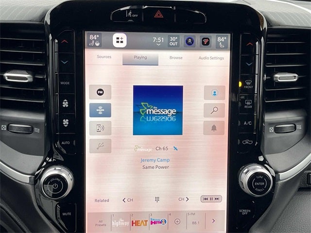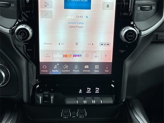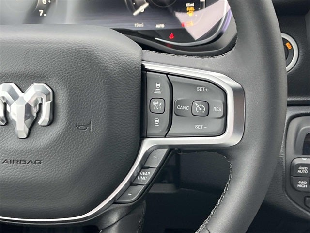 115V Auxiliary Power Outlet, 115V Auxiliary Rear Power Outlet, 12 Touchscreen Display, 3 Rear Seat Head Restraints, 4 Way Front Headrests, 400W Inverter, 4G LTE Wi-Fi Hot Spot, Apple CarPlay, Auto Power-Folding Mirrors, Auto-Dimming Exterior Driver Mirror, Auto-Dimming Rear-View Mirror, Bed Utility Group, Big Horn Level 2 Equipment Group, Black Exterior Mirrors, Black Premium Power Mirrors, Body Color Fender Flares, Bucket Seats, Center Console Parts Module, Cluster 7.0 TFT Color Display, Configurable Drive Mode, Connectivity - US/Canada, Convex Wide-Angle Exterior Mirror Insert, Deluxe Cloth Bucket Seats, Disassociated Touchscreen Display, Exterior 115V AC Outlet, Exterior Mirrors Courtesy Lamps, Front Seat Back Map Pockets, Full Length Floor Console, Glove Box Lamp, Google Android Auto, GPS Antenna Input, GPS Navigation, HD Radio, Heated Front Seats, Heated Steering Wheel, Integrated Center Stack Radio, Leather Wrapped Steering Wheel, LED Footwell Lighting, Manual Adjust 4-Way Front Passenger Seat, MOPAR 4 Adjustable Cargo Tie-Down Hooks, Overhead LED Lamps, Pick-Up Box Lighting, Power 2-Way Driver Lumbar Adjust, Power Adjust 8-Way Driver Seat, Power Adjustable Pedals, Premium Overhead Console, Quick Order Package 27Z Big Horn, Rear 60/40 Folding Seat, Rear Center Armrest, Rear Power Sliding Window, Rear Window Defroster, Remote Tailgate Release, Security Alarm, SiriusXM Radio Service, Steering Wheel Mounted Audio Controls, Universal Garage Door Opener, USB Host Flip.