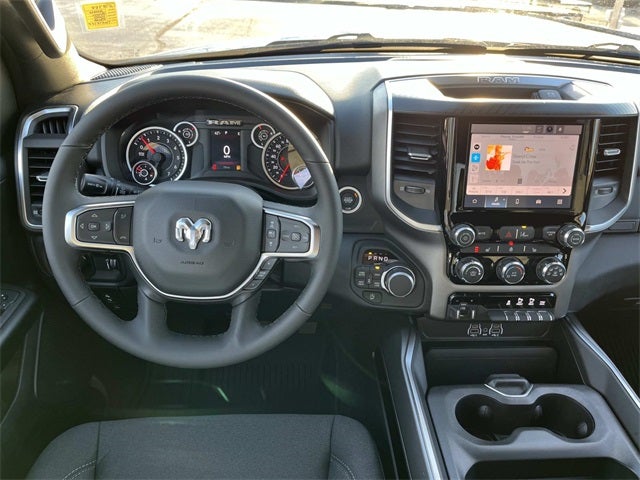 115V Auxiliary Power Outlet, 2nd Row in Floor Storage Bins, 3 Rear Seat Head Restraints, 4 Way Front Headrests, 400W Inverter, Accent Color Door Handles, Accent Color Premium Power Mirrors, Accent Color Tailgate Handle, Anti-Spin Differential Rear Axle, Auto Power-Folding Mirrors, Auto-Dimming Exterior Driver Mirror, Auto-Dimming Rear-View Mirror, Bed Utility Group, Big Horn Level 1 Equipment Group, Black Exterior Mirrors, Black Exterior Truck Badging, Black Headlamp Bezels, Black Interior Accents, Black Painted Exterior Mirrors Caps, Black Premium Power Mirrors, Black Tail Lamp Bezels, Body Color Fender Flares, Body Color Front Bumper, Body Color Rear Bumper with Step Pads, Bucket Seats, Center Console Parts Module, Convex Wide-Angle Exterior Mirror Insert, Deluxe Cloth Bucket Seats, Dual Exhaust with Black Tips, Exterior 115V AC Outlet, Exterior Mirrors Courtesy Lamps, Exterior Mirrors with Heating Element, Exterior Mirrors with Supplemental Signals, Front Seat Back Map Pockets, Full Length Floor Console, Glove Box Lamp, Grille Black Surround Black Mesh, Heated Front Seats, Heated Steering Wheel, Leather Wrapped Steering Wheel, Manual Adjust 4-Way Front Passenger Seat, MOPAR 4 Adjustable Cargo Tie-Down Hooks, MOPAR Spray in Bedliner, Night Edition, Pick-Up Box Lighting, Power 2-Way Driver Lumbar Adjust, Power Adjust 8-Way Driver Seat, Power Adjustable Pedals, Quick Order Package 27Z Big Horn, RAM Grille Badge - Black, Rear 60/40 Folding Seat, Rear Center Armrest, Rear Dome with on/Off Switch Lamp, Rear Power Sliding Window, Rear Window Defroster, SiriusXM Radio Service, SiriusXM Satellite Radio, Steering Wheel Mounted Audio Controls, Sun Visors with Illuminated Vanity Mirrors, Universal Garage Door Opener, Wheels: 20 x 9.0 Aluminum Painted Clad.