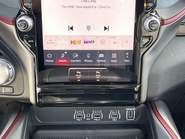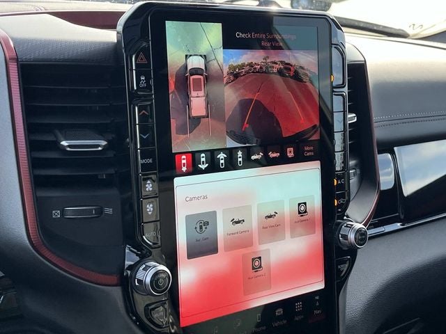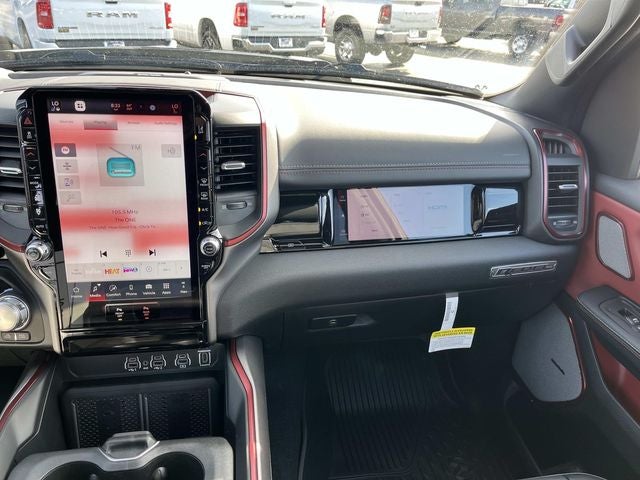 115V Auxiliary Rear Power Outlet, 12-Way/1-Way Trailer Connector, 14.4 Touchscreen Display, 2-Door Passive Entry, Front Door Locks, 4G LTE Wi-Fi Hot Spot, Accent Color Door Handles, Accent Color Premium Power Mirrors, Accent Color Tailgate Handle, Active Driving Assist System, Advanced Safety Group II, Apple CarPlay, Auto Power-Folding Mirrors, Auto-Dimming Exterior Driver Mirror, Bed Utility Group, Black Painted Exterior Mirrors Caps, Connected Travel and Traffic Services, Connectivity - US/Canada, Convex Wide-Angle Exterior Mirror Insert, Disassociated Touchscreen Display, Driver Seat Memory, Drowsy Driver Detection, Dual Wireless Charging Pad, Evasive Steer Assist, Exterior 115V AC Outlet, Exterior Mirrors Approach Lamps, Exterior Mirrors Courtesy Lamps, Exterior Mirrors with Heating Element, Exterior Mirrors with Memory, Exterior Mirrors with Supplemental Signals, Front Passenger Interactive Display, Global Telematics Box Module, Google Android Auto, GPS Antenna Input, GPS Navigation, Harman/Kardon 19 Speaker Premium Sound, HD Radio, Heads-Up Display, Heated Second Row Seats, Integrated Center Stack Radio, Integrated Voice Command with Bluetooth®, Intersection Collision Assist System, LED CHMSL Lamp, Media Hub with 2 Charge Only USBs, MOPAR 4 Adjustable Cargo Tie-Down Hooks, MOPAR Spray in Bedliner, Off-Road Information Pages, Power 2-Way Passenger Lumbar Adjust, Power Adjust 8-Way Front Passenger Seat, Power Adjustable Pedals with Memory, Power Tailgate, Proximity Approach/Departure Lamps, Quick Order Package 21W Rebel, Radio: Uconnect 5 Nav with 14.4 Display, Radio/Driver Seat/Mirrors/Pedals Memory, Rain Sensitive Windshield Wipers, Rear Window Defroster, Rebel Level 2 Equipment Group, Security Alarm, SiriusXM Radio Service, SiriusXM with 360L, Smartphone as a Key Capable, Surround View Camera System, Technology Group, Traffic Sign Recognition, USB Host Flip.