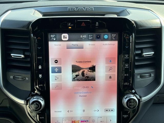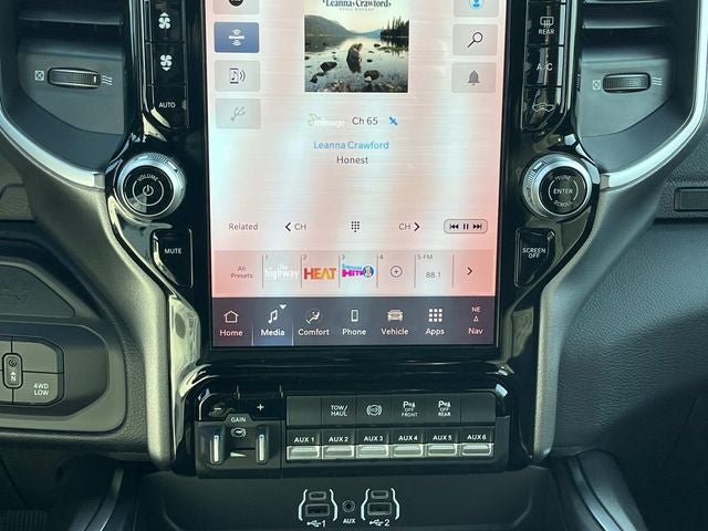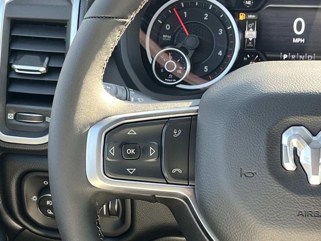 115-Volt Auxiliary Front Power Outlet, 115V Auxiliary Rear Power Outlet, 12 Touchscreen Display, 2 Way Rear Headrest Seat, 2nd Row in Floor Storage Bins, 4 Way Front Headrests, 400W Inverter, 4G LTE Wi-Fi Hot Spot, 9 Alpine Speakers with Subwoofer, Active Lane Management System, Adaptive Steering System, Air Conditioning ATC with Dual Zone Control, Alexa Built-in, Anti-Spin Differential Rear Axle, Apple CarPlay, Auto High Beam Headlamp Control, Auto Power-Folding Mirrors, Auto-Dimming Rear-View Mirror, Big Horn Level 2 Plus Equipment Group, Black Exterior Mirrors, Black Exterior Truck Badging, Black Interior Accents, Black Wheel Center Hub, Blind Spot and Cross Path Detection, Body Color Grille-Surround, Bucket Seats, Center Stop Lamp with Cargo View Camera, Cluster 7.0 TFT Color Display, Connected Travel and Traffic Services, Connectivity - US/Canada, Dampened Tailgate, Disassociated Touchscreen Display, Drowsy Driver Detection, Dual Glove Boxes, Dual Wireless Charging Pad, Emergency Vehicle Alert System (EVAS), Exterior 115V AC Outlet, Exterior Mirrors Courtesy Lamps, Exterior Mirrors with Heating Element, Exterior Mirrors with Supplemental Signals, Foam Bottle Insert (door Trim Panel), Folding Flat Load Floor Storage, Footwell Courtesy Lamp, For Details, Visit DriveUconnect.com, For More Info, Call 800-643-2112, Forward and Reverse Utility Lights, Front Seat Back Map Pockets, Full Length Upgraded Floor Console, Global Telematics Box Module, Gloss Black Nostrils/Mic Black Grille, Glove Box Lamp, Google Android Auto, GPS Antenna Input, GPS Navigation, HD Radio, Heated Front Seats, Heated Steering Wheel, Integrated Voice Command with Bluetooth®, LED Bed Lighting, LED Tail Lamps, Locking Lower Glove Box, Luxury Steering Wheel, Manual Adjust 4-Way Front Passenger Seat, Media Hub with 2 Charge Only USBs, Mirror Running Lights, MOPAR Deployable Bed Step, MOPAR Spray in Bedliner, MOPAR Trailer Camera Wiring with No Camera, Night Edition, Off-Road Info Pages, Painted Front Bumper, Painted Rear Bumper, Power 2-Way Driver Lumbar Adjust, Power Adjust 8-Way Driver Seat, Power Adjust Mirrors, Power Adjustable Pedals, Power Heated Folding Telescopic Mirrors, Power Telescoping Mirrors, Power-Adjustable Convex Aux Mirrors, Premium Cloth Bucket Seats, Quick Order Package 24Z Big Horn, Radio: Uconnect 5 Navigation with 12.0 Display, Rain Sensitive Windshield Wipers, Rear 60/40 Folding Seat, Rear Dome with on/Off Switch Lamp, Rear Power Sliding Window, Red Tail Lamp Bezels, Remote Start System, Selectable Tire Fill Alert, SiriusXM Radio Service, SiriusXM with 360L, Steering Wheel Mounted Audio Controls, Sun Visors with Illuminated Vanity Mirrors, Surround View Camera System, Traffic Sign Recognition, Trailer Reverse Guidance, Trailer Tire Pressure Monitoring System, Trailer Tow Pages, Universal Garage Door Opener, Wheels: 20 x 8.0 Black Painted Aluminum.