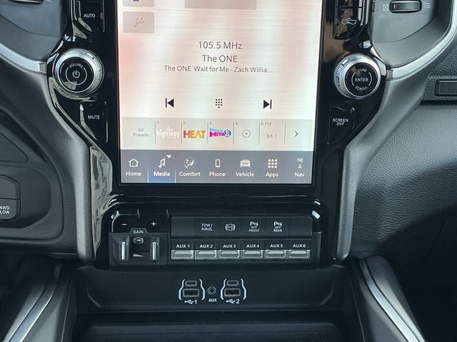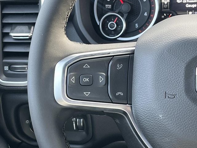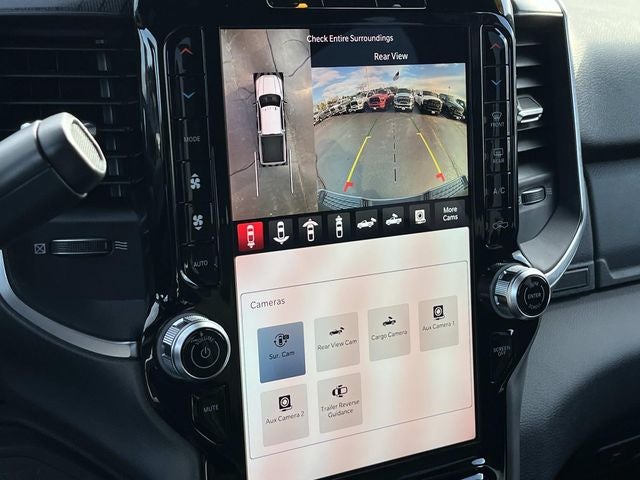 115-Volt Auxiliary Front Power Outlet, 115V Auxiliary Rear Power Outlet, 12 Touchscreen Display, 2 Way Rear Headrest Seat, 2nd Row in Floor Storage Bins, 4 Way Front Headrests, 400W Inverter, 4G LTE Wi-Fi Hot Spot, 9 Alpine Speakers with Subwoofer, Active Lane Management System, Adaptive Steering System, Air Conditioning ATC with Dual Zone Control, Alexa Built-in, Anti-Spin Differential Rear Axle, Apple CarPlay, Auto High Beam Headlamp Control, Auto Power-Folding Mirrors, Auto-Dimming Rear-View Mirror, Big Horn Level 2 Plus Equipment Group, Black Exterior Mirrors, Black Exterior Truck Badging, Black Interior Accents, Black Wheel Center Hub, Blind Spot and Cross Path Detection, Body Color Grille-Surround, Bucket Seats, Center Stop Lamp with Cargo View Camera, Cluster 7.0 TFT Color Display, Connected Travel and Traffic Services, Connectivity - US/Canada, Dampened Tailgate, Disassociated Touchscreen Display, Drowsy Driver Detection, Dual Glove Boxes, Dual Wireless Charging Pad, Emergency Vehicle Alert System (EVAS), Exterior 115V AC Outlet, Exterior Mirrors Courtesy Lamps, Exterior Mirrors with Heating Element, Exterior Mirrors with Supplemental Signals, Foam Bottle Insert (door Trim Panel), Folding Flat Load Floor Storage, Footwell Courtesy Lamp, For Details, Visit DriveUconnect.com, For More Info, Call 800-643-2112, Forward and Reverse Utility Lights, Front Seat Back Map Pockets, Full Length Upgraded Floor Console, Global Telematics Box Module, Gloss Black Nostrils/Mic Black Grille, Glove Box Lamp, Google Android Auto, GPS Antenna Input, GPS Navigation, HD Radio, Heated Front Seats, Heated Steering Wheel, Integrated Voice Command with Bluetooth®, LED Bed Lighting, LED Tail Lamps, Locking Lower Glove Box, Luxury Steering Wheel, Manual Adjust 4-Way Front Passenger Seat, Media Hub with 2 Charge Only USBs, Mirror Running Lights, MOPAR Deployable Bed Step, MOPAR Spray in Bedliner, MOPAR Trailer Camera Wiring with No Camera, Night Edition, Off-Road Info Pages, Painted Front Bumper, Painted Rear Bumper, Power 2-Way Driver Lumbar Adjust, Power Adjust 8-Way Driver Seat, Power Adjust Mirrors, Power Adjustable Pedals, Power Heated Folding Telescopic Mirrors, Power Telescoping Mirrors, Power-Adjustable Convex Aux Mirrors, Premium Cloth Bucket Seats, Quick Order Package 24Z Big Horn, Quick Order Package 2UZ Big Horn, Radio: Uconnect 5 Navigation with 12.0 Display, Rain Sensitive Windshield Wipers, Rear 60/40 Folding Seat, Rear Dome with on/Off Switch Lamp, Rear Power Sliding Window, Red Tail Lamp Bezels, Remote Start System, Selectable Tire Fill Alert, SiriusXM Radio Service, SiriusXM with 360L, Steering Wheel Mounted Audio Controls, Sun Visors with Illuminated Vanity Mirrors, Surround View Camera System, Traffic Sign Recognition, Trailer Reverse Guidance, Trailer Tire Pressure Monitoring System, Trailer Tow Pages, Universal Garage Door Opener, Wheels: 20 x 8.0 Black Painted Aluminum.