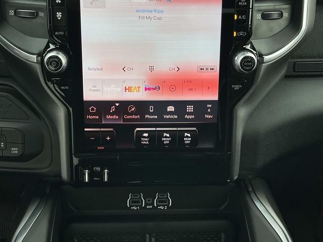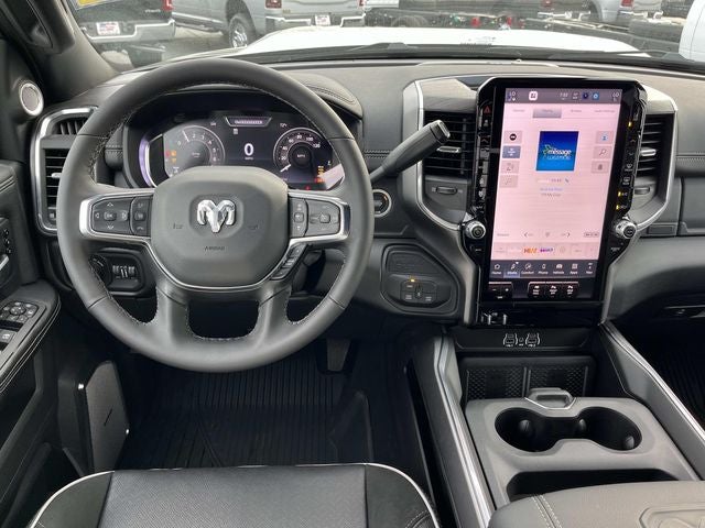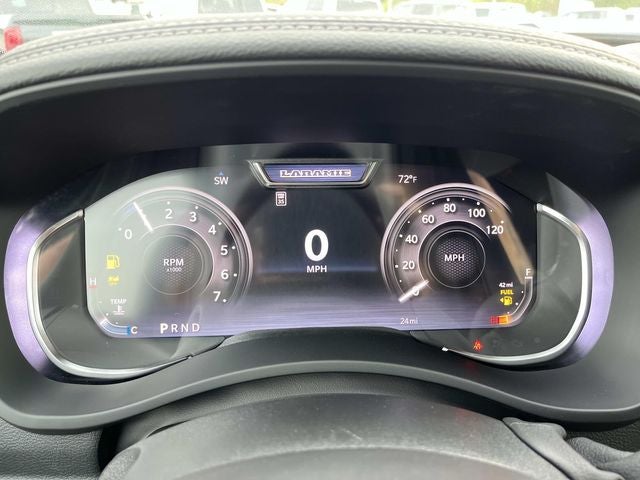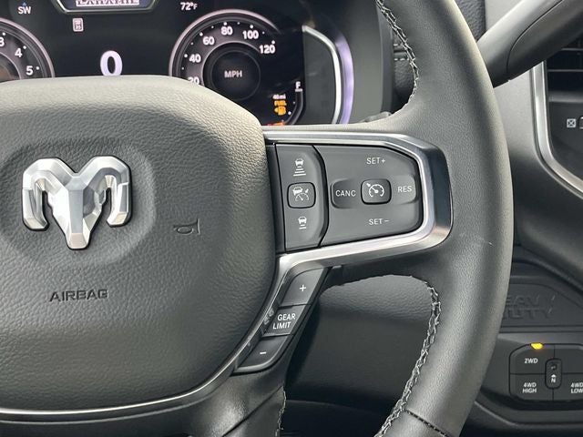 #1 Seat Foam Cushion, 115V Auxiliary Rear Power Outlet, 14.4 Touchscreen Display, 17 Speaker Harman/Kardon Premium Sound, 2 Way Rear Headrest Seat, 2nd Row in Floor Storage Bins, 4 Way Front Headrests, 4G LTE Wi-Fi Hot Spot, Active Lane Management System, Adaptive Steering System, Alexa Built-in, Anti-Spin Differential Rear Axle, Apple CarPlay, Auto Adjust in Reverse Exterior Mirrors, Auto Dim Exterior Mirror, Auto High Beam Headlamp Control, Auto Power-Folding Mirrors, Auto-Dimming Exterior Passenger Mirror, Black Exterior Mirrors, Black Exterior Truck Badging, Black Wheel Center Hub, Body Color Grille-Surround, Bucket Seats, Center Stop Lamp with Cargo View Camera, Chrome Exterior Mirrors, Connected Travel and Traffic Services, Connectivity - US/Canada, Disassociated Touchscreen Display, Drowsy Driver Detection, Dual Wireless Charging Pad, Emergency Vehicle Alert System (EVAS), Exterior Mirrors Courtesy Lamps, Exterior Mirrors with Heating Element, Exterior Mirrors with Memory, Exterior Mirrors with Supplemental Signals, Foam Bottle Insert (door Trim Panel), Folding Flat Load Floor Storage, For Details, Visit DriveUconnect.com, For More Info, Call 800-643-2112, Forward and Reverse Utility Lights, Front Seat Back Map Pockets, Full Length Upgraded Floor Console, Global Telematics Box Module, Gloss Black Grille Billets/Accents, Google Android Auto, GPS Antenna Input, GPS Navigation, HD Radio, Heated Front Seats, Heated Steering Wheel, High Back Seats, Integrated Voice Command with Bluetooth®, Laramie Level 2 Plus Equipment Group, Leather Trimmed Bucket Seats, LED Bed Lighting, Mirror Running Lights, MOPAR Deployable Bed Step, MOPAR Spray in Bedliner, Night Edition, Off-Road Info Pages, Power 2-Way Driver Lumbar Adjust, Power 2-Way Passenger Lumbar Adjust, Power Adjust 8-Way Driver Seat, Power Adjust 8-Way Front Passenger Seat, Power Adjust Mirrors, Power Adjustable Pedals with Memory, Power Deployable Running Boards, Power Heated Fold Telescopic Mirrors with Memory, Power Telescoping Mirrors, Power-Adjustable Convex Aux Mirrors, Quick Order Package 2UH Laramie, Radio: Uconnect 5 Nav with 14.4 Display, Radio/Driver Seat/Mirrors/Pedals Memory, Rain Sensitive Windshield Wipers, Rear 60/40 Folding Seat, Remote Tailgate Release, Selectable Tire Fill Alert, SiriusXM Radio Service, SiriusXM with 360L, Sport Performance Hood, Traffic Sign Recognition, Trailer Tow Pages, Ventilated Front Seats, Wheels: 20 x 8.0 Black Painted Aluminum.