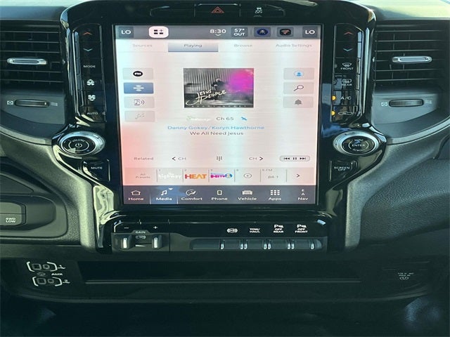 12 Touchscreen Display, 2 Way Rear Headrest Seat, 4 Way Front Headrests, 40/20/40 Split Bench Seat, 400W Inverter, 4G LTE Wi-Fi Hot Spot, Apple CarPlay, Auto Power-Folding Mirrors, Auto-Dimming Rear-View Mirror, Bed Utility Group, Black Exterior Mirrors, Black Wheel Center Hub, Body Color Grille-Surround, Carpet Floor Covering, Cloth 40/20/40 Bench Seat, Connectivity - US/Canada, Disassociated Touchscreen Display, Emergency Vehicle Alert System (EVAS), Exterior 115V AC Outlet, Exterior Mirrors Courtesy Lamps, For Details, Visit DriveUconnect.com, For More Info, Call 800-643-2112, Google Android Auto, GPS Antenna Input, GPS Navigation, HD Radio, LED Bed Lighting, Manual Adjust 4-Way Driver Seat, Manual Adjust 4-Way Front Passenger Seat, Mirror Running Lights, Mopar Black Tubular Side Steps, MOPAR Deployable Bed Step, Off-Road Info Pages, Painted Front Bumper, Painted Rear Bumper, ParkSense Front/Rear Park Assist System, Power Adjust Mirrors, Power Heated Folding Telescopic Mirrors, Power Telescoping Mirrors, Power-Adjustable Convex Aux Mirrors, Quick Order Package 24C Black Express, Rear Folding Seat, Rear Power Sliding Window, Remote USB Port - Charge Only, Selectable Tire Fill Alert, SiriusXM Radio Service, Sport Performance Hood, Storage Tray, Tinted Acoustic Windshield Glass, Tradesman Level 1 Equipment Group, Trailer Tow Pages, Wheels: 20 x 8.0 Black Painted Aluminum.