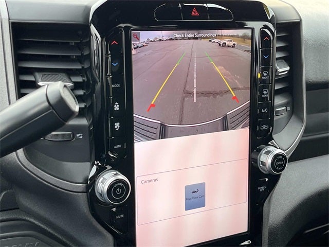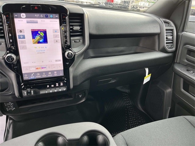 115-Volt Auxiliary Front Power Outlet, 12 Touchscreen Display, 4 Way Front Headrests, 40/20/40 Split Bench Seat, 400W Inverter, 4G LTE Wi-Fi Hot Spot, 6 Speakers, Air Conditioning with Dual Zone Control, Alexa Built-in, Anti-Spin Differential Rear Axle, Apple CarPlay, Auto-Dimming Rear-View Mirror, Bed Utility Group, Black Exterior Mirrors, Bright Front Bumper, Bright Rear Bumper, Carpet Floor Covering, Center Hub, Chrome Grille Surround, Cloth 40/20/40 Bench Seat, Connected Travel and Traffic Services, Connectivity - US/Canada, Convenience Group, Disassociated Touchscreen Display, Emergency Vehicle Alert System (EVAS), Exterior 115V AC Outlet, Exterior Mirrors Courtesy Lamps, Exterior Mirrors with Heating Element, Exterior Mirrors with Supplemental Signals, For Details Visit DriveUconnect.com, For More Info Call 800-643-2112, Front 1-Touch Down Power Windows, Front Armrest with Cupholders, Front Floor Mats, Global Telematics Box Module, Google Android Auto, GPS Antenna Input, GPS Navigation, HD Radio, Integrated Voice Command with Bluetooth®, LED Bed Lighting, Manual Adjust 4-Way Driver Seat, Manual Adjust 4-Way Front Passenger Seat, Manual Folding Exterior Mirrors, Manuarl Telescoping Mirrors, Matte Black Mesh with Chrome Grille, Mirror Running Lights, Mopar Black Tubular Side Steps, MOPAR Deployable Bed Step, MOPAR Spray in Bedliner, Off-Road Info Pages, ParkSense Front/Rear Park Assist System, Power Adjust Mirrors, Power Heated Folding Telescopic Mirrors, Power-Adjustable Convex Aux Mirrors, Quick Order Package 2UA Tradesman, Radio: Uconnect 5 Navigation with 12.0 Display, Rear Sliding Window, Remote Keyless Entry, Remote USB Port - Charge Only, Selectable Tire Fill Alert, SiriusXM Radio Service, SiriusXM with 360L, Speed Sensitive Power Locks, Tinted Acoustic Windshield Glass, Tradesman Level 2 Equipment Group, Trailer Tow Pages, Upgraded Door Trim Panel, Wheels: 18 x 8.0 Steel Chrome Clad.