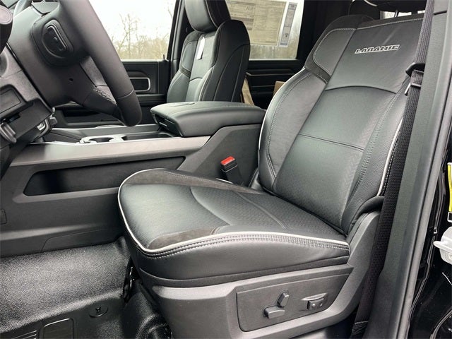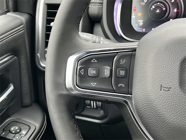 #1 Seat Foam Cushion, 115V Auxiliary Power Outlet, 115V Auxiliary Rear Power Outlet, 12.0 Touchscreen Display, 2 Way Rear Headrest Seat, 2-Door Passive Entry, Front Door Locks, 4 Way Front Headrests, 40/20/40 Split Bench Seat, 400W Inverter, 4G LTE Wi-Fi Hot Spot, Acoustic Front Door Glass, Apple CarPlay, Auto High Beam Headlamp Control, Bi-Function LED Projector Headlamps, Black Exterior Mirrors, Black Power Heated Fold Telescope Mirrors, Black-Out Tape, Body Color Door Handles, Body Color Fender Flares, Body Insulation, Bright Front Bumper, Bucket Seats, Center Hub, Chrome Billets/Accents Grille, Chrome Grille Surround, Cloth 40/20/40 Bench Seat, Cluster 12 TFT Color Display, Connectivity - US/Canada, Courtesy Lamps, Digital Rearview Mirror, Disassociated Touchscreen Display, Dual Glove Boxes, Dual Wireless Charging Pad, Exterior Mirrors Courtesy Lamps, Folding Flat Load Floor Storage, For Details, Visit DriveUconnect.com, For More Info, Call 800-643-2112, Front Door Accent Lighting, Front Seat Back Map Pockets, Full Length Upgraded Floor Console, Glove Box Lamp, Google Android Auto, GPS Antenna Input, GPS Navigation, HD Radio, Heated 2nd Row Seats, High Back Seats, Highline Door Trim Panel, Laramie Trim Group, Leather Trimmed Bucket Seats, LED Daytime Running Headlamps, LED Interior Lighting, Locking Lower Glove Box, Luxury Steering Wheel, Manual Adjust 4-Way Driver Seat, Manual Adjust 4-Way Front Passenger Seat, Manual Folding Exterior Mirrors, Manual Telescoping Mirrors, Mirror Running Lights, Mirror-Mounted Aux Reverse Lamps, Off-Road Information Pages, Overhead LED Lamps, Painted Front Bumper, ParkSense Front/Rear Park Assist System, Power 2-Way Passenger Lumbar Adjust, Power Adjust 8-Way Driver Seat, Power Adjust 8-Way Front Passenger Seat, Power Adjust Mirrors, Power Rear Sliding Window, Power-Adjustable Convex Aux Mirrors, Premium Overhead Console, Quick Order Package 25Z Big Horn, Rain Sensitive Windshield Wipers, RAM Door Badges, Rear 60/40 Folding Seat, Rear Door Accent Lighting, Rear Folding Seat, Rear Window Defroster, Remote Start System, Remote USB Port - Charge Only, Satin Chrome Key Fob, SiriusXM Radio Service, Steering Wheel Mounted Audio Controls, Storage Tray, Tinted Acoustic Windshield Glass, Trailer Brake Control, Trailer Light Check, Trailer Tow Pages, Traveler/Mini Trip Computer, Universal Garage Door Opener, Ventilated Front Seats, Wheels: 18 x 8.0 Diamond Cut Aluminum, Wheels: 18 x 8.0 Polished Aluminum.