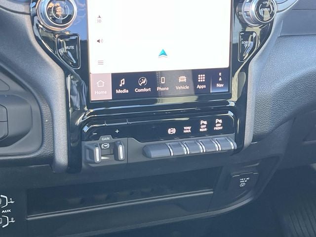 12 Touchscreen Display, 4 Way Front Headrests, 40/20/40 Split Bench Seat, 4G LTE Wi-Fi Hot Spot, 6 Speakers, Air Conditioning ATC with Dual Zone Control, Alexa Built-in, Apple CarPlay, Auto-Dimming Rear-View Mirror, Bed Convenience Group, Black Exterior Mirrors, Bright Front Bumper, Bright Rear Bumper, Bright Wheel Skins, Carpet Floor Covering, Center Hub, Chrome Grille Surround, Cloth 40/20/40 Bench Seat, Commercial Features Package, Connected Travel and Traffic Services, Connectivity - US/Canada, Convenience Group, Disassociated Touchscreen Display, Emergency Vehicle Alert System (EVAS), Exterior Mirrors Courtesy Lamps, Exterior Mirrors with Heating Element, Exterior Mirrors with Supplemental Signals, For Details Visit DriveUconnect.com, For More Info, Call 800-643-2112, Front 1-Touch Down Power Windows, Front Armrest with Cupholders, Front Floor Mats, Global Telematics Box Module, Google Android Auto, GPS Antenna Input, GPS Navigation, HD Radio, Integrated Voice Command with Bluetooth®, LED Bed Lighting, Manual Adjust 4-Way Driver Seat, Manual Adjust 4-Way Front Passenger Seat, Manual Folding Exterior Mirrors, Manuarl Telescoping Mirrors, Matte Black Mesh with Chrome Grille, Mirror Running Lights, Mopar Black Tubular Side Steps, MOPAR Spray in Bedliner, Off-Road Information Pages, ParkSense Front/Rear Park Assist System, Power Adjust Mirrors, Power Heat Fold Telescope Mirrors, Power-Adjustable Convex Aux Mirrors, Quick Order Package 24A Tradesman, Radio: Uconnect 5 Navigation with 12.0 Display, Rear Sliding Window, Remote Keyless Entry, Remote USB Port - Charge Only, Selectable Tire Fill Alert, SiriusXM Radio Service, SiriusXM with 360L, Speed Sensitive Power Locks, Tinted Acoustic Windshield Glass, Tradesman Level 2A Equipment Group, Trailer Tow Pages, Upgraded Door Trim Panel.