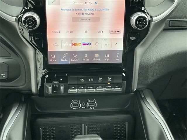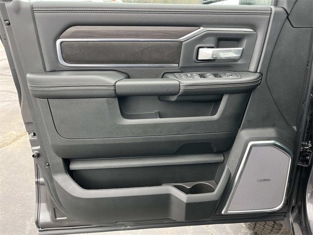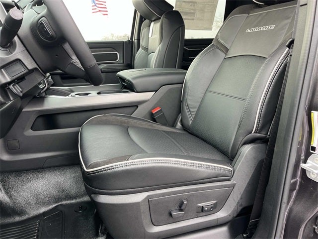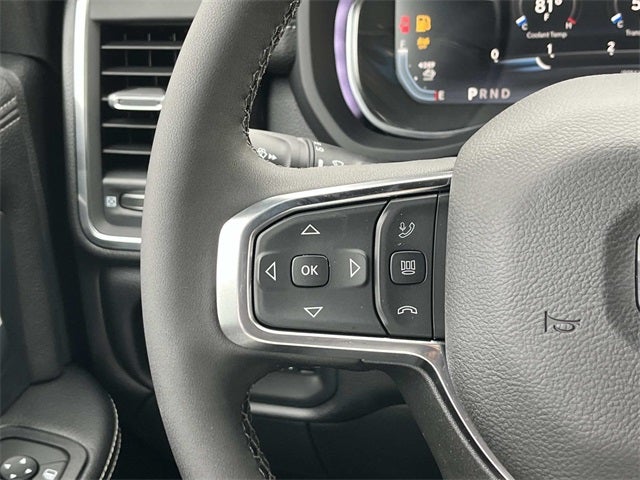 #1 Seat Foam Cushion, 115V Auxiliary Power Outlet, 115V Auxiliary Rear Power Outlet, 12.0 Touchscreen Display, 17 Speaker Harman/Kardon Premium Sound, 19.5 x 6.0 Steel Wheels, 2 Way Rear Headrest Seat, 2-Door Passive Entry, Front Door Locks, 4 Way Front Headrests, 40/20/40 Split Bench Seat, 400W Inverter, 4G LTE Wi-Fi Hot Spot, Acoustic Front Door Glass, Air Conditioning ATC with Dual Zone Control, Alexa Built-in, Apple CarPlay, Auto High Beam Headlamp Control, Bi-Function LED Projector Headlamps, Black Exterior Mirrors, Black-Out Tape, Body Color Door Handles, Body Color Fender Flares, Body Insulation, Bright Front Bumper, Bucket Seats, Center Hub, CHMSL Lamp with Camera, Chrome Billets/Accents Grille, Chrome Grille Surround, Cloth 40/20/40 Bench Seat, Cluster 12 TFT Color Display, Connected Travel and Traffic Services, Connectivity - US/Canada, Courtesy Lamps, Digital Rearview Mirror, Disassociated Touchscreen Display, Dual Glove Boxes, Dual Wireless Charging Pad, Exterior Mirrors Courtesy Lamps, Exterior Mirrors with Heating Element, Exterior Mirrors with Supplemental Signals, Foam Bottle Insert (door Trim Panel), Folding Flat Load Floor Storage, For Details, Visit DriveUconnect.com, For More Info, Call 800-643-2112, Front Armrest with Cupholders, Front Door Accent Lighting, Front Seat Back Map Pockets, Full Length Upgraded Floor Console, Global Telematics Box Module, Glove Box Lamp, Google Android Auto, GPS Antenna Input, GPS Navigation, HD Radio, Heated Front Seats, Heated Second Row Seats, Heated Steering Wheel, High Back Seats, Highline Door Trim Panel, Integrated Voice Command with Bluetooth®, Laramie Trim Group, Leather Trimmed Bucket Seats, LED Daytime Running Headlamps, LED Dome Lamp with on/Off Switch, LED Interior Lighting, Locking Lower Glove Box, Luxury Steering Wheel, Manual Adjust 4-Way Driver Seat, Manual Adjust 4-Way Front Passenger Seat, Manual Folding Exterior Mirrors, Manuarl Telescoping Mirrors, Matte Black Mesh Grille with Chrome, Media Hub with 2 Charge Only USBs, Mirror Power Heat Fold Telescope Black, Mirror Running Lights, Off-Road Info Pages, Overhead LED Lamps, Painted Front Bumper, Painted I/P Bezels with Hydrographics, Painted I/P Bezels with Premium Film, ParkSense Front/Rear Park Assist System, Passenger Sun Visor with Illuminated Mirror, Power 2-Way Driver Lumbar Adjust, Power 2-Way Passenger Lumbar Adjust, Power Adjust 8-Way Driver Seat, Power Adjust 8-Way Front Passenger Seat, Power Adjust Mirrors, Power-Adjustable Convex Aux Mirrors, Premium Overhead Console, Premium Vinyl Door Trim with Map Pocket, Quick Order Package 25Z Big Horn, Quick Order Package 2XZ Big Horn, Radio: Uconnect 5 Navigation with 12.0 Display, Rain Sensitive Windshield Wipers, RAM Door Badges, Rear 60/40 Folding Seat, Rear Door Accent Lighting, Rear Folding Seat, Rear Power Sliding Window, Rear Window Defroster, Remote Start System, Remote USB Port - Charge Only, Satin Chrome Key Fob, SiriusXM Radio Service, SiriusXM with 360L, Steering Wheel Mounted Audio Controls, Storage Tray, Sun Visors with Illuminated Vanity Mirrors, Temperature and Compass Gauge, Tinted Acoustic Windshield Glass, Trailer Brake Control, Trailer Light Check, Trailer Tow Pages, Traveler/Mini Trip Computer, Universal Garage Door Opener, Ventilated Front Seats, Wheels: 19.5 x 6.0 Forged Aluminum Polished.