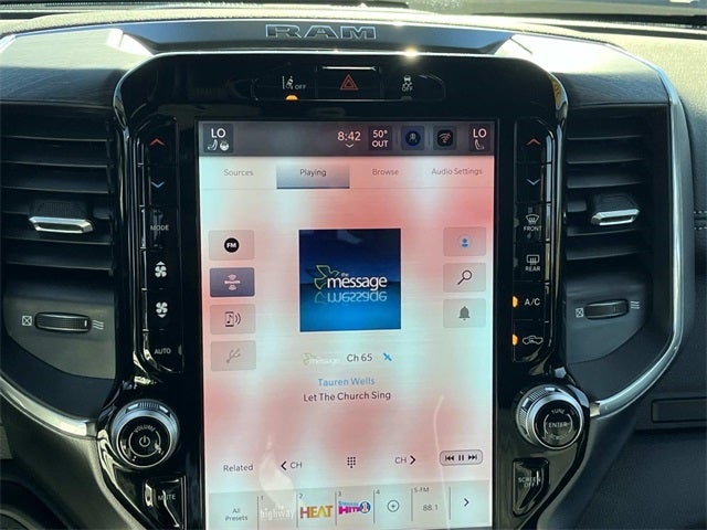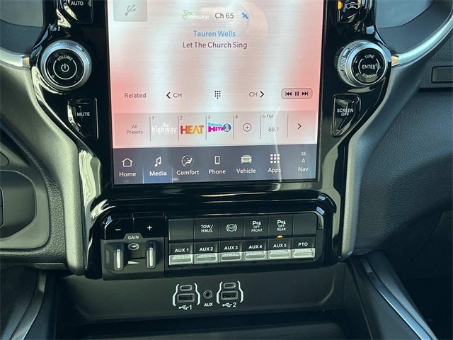 #1 Seat Foam Cushion, 115V Auxiliary Power Outlet, 115V Auxiliary Rear Power Outlet, 12.0 Touchscreen Display, 19.5 x 6.0 Steel Wheels, 2 Way Rear Headrest Seat, 2-Door Passive Entry, Front Door Locks, 4 Way Front Headrests, 40/20/40 Split Bench Seat, 400W Inverter, 4G LTE Wi-Fi Hot Spot, Acoustic Front Door Glass, Adaptive Steering System, Apple CarPlay, Auto High Beam Headlamp Control, Bi-Function LED Projector Headlamps, Black Exterior Mirrors, Black Power Heated Fold Telescope Mirrors, Black-Out Tape, Body Color Door Handles, Body Color Fender Flares, Body Insulation, Bright Front Bumper, Bucket Seats, Center Hub, Chrome Billets/Accents Grille, Chrome Grille Surround, Cloth 40/20/40 Bench Seat, Cluster 12 TFT Color Display, Connectivity - US/Canada, Courtesy Lamps, Digital Rearview Mirror, Disassociated Touchscreen Display, Drowsy Driver Detection, Dual Glove Boxes, Dual Wireless Charging Pad, Exterior Mirrors Courtesy Lamps, Folding Flat Load Floor Storage, For Details, Visit DriveUconnect.com, For More Info, Call 800-643-2112, Front Door Accent Lighting, Front Seat Back Map Pockets, Full Length Upgraded Floor Console, Glove Box Lamp, Google Android Auto, GPS Antenna Input, GPS Navigation, HD Radio, Heated 2nd Row Seats, Heated Front Seats, Heated Steering Wheel, High Back Seats, Highline Door Trim Panel, Lane Keep Assist, Laramie Trim Group, Leather Trimmed Bucket Seats, LED Daytime Running Headlamps, LED Interior Lighting, Locking Lower Glove Box, Luxury Steering Wheel, Manual Adjust 4-Way Driver Seat, Manual Adjust 4-Way Front Passenger Seat, Manual Folding Exterior Mirrors, Mirror Running Lights, Off-Road Info Pages, Overhead LED Lamps, Painted Front Bumper, ParkSense Front/Rear Park Assist System, Power 2-Way Driver Lumbar Adjust, Power 2-Way Passenger Lumbar Adjust, Power 8-Way Adjustable Driver Seat, Power 8-Way Adjustable Front Passenger Seat, Power Adjust Mirrors, Power Rear Sliding Window, Power-Adjustable Convex Aux Mirrors, Premium Overhead Console, Quick Order Package 25Z Big Horn, Rain Sensitive Windshield Wipers, RAM Door Badges, Rear 60/40 Folding Seat, Rear Door Accent Lighting, Rear Folding Seat, Rear Window Defroster, Remote Start System, Remote USB Port - Charge Only, Safety Group, Satin Chrome Key Fob, Security Alarm, SiriusXM Radio Service, Steering Wheel Mounted Audio Controls, Storage Tray, Tinted Acoustic Windshield Glass, Trailer Brake Control, Trailer Light Check, Trailer Tow Pages, Traveler/Mini Trip Computer, Universal Garage Door Opener, Ventilated Front Seats, Wheels: 19.5 x 6.0 Forged Aluminum Polished.